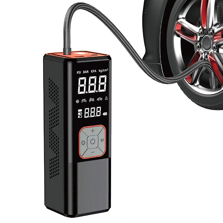 Viditeľnosť: Prenosný vzduchový kompresor je vybavený vstavaným LED svetlom na vrchu, ktoré poskytuje osvetlenie v noci alebo v prípade núdze.