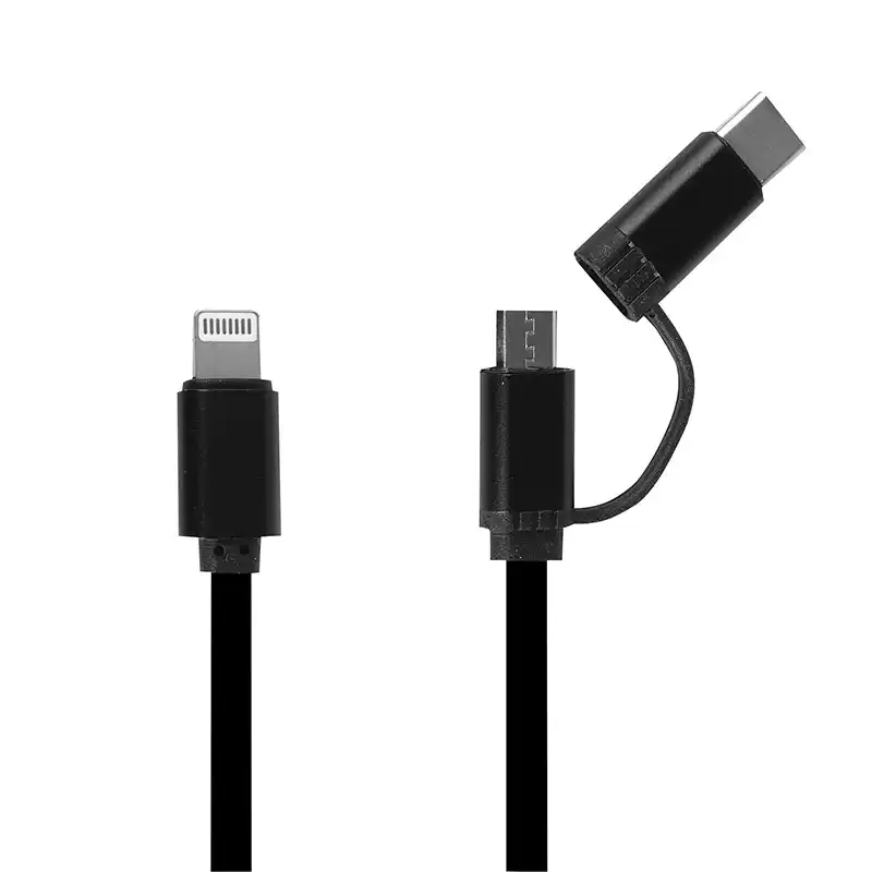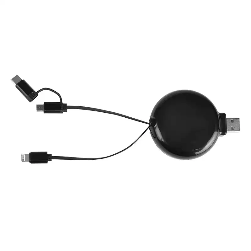 Všestranné riešenie 3 v 1 s integrovanými konektormi Lightning, Micro-USB a USB-C na jedinej zasúvacej cievke pre maximálnu kompatibilitu.